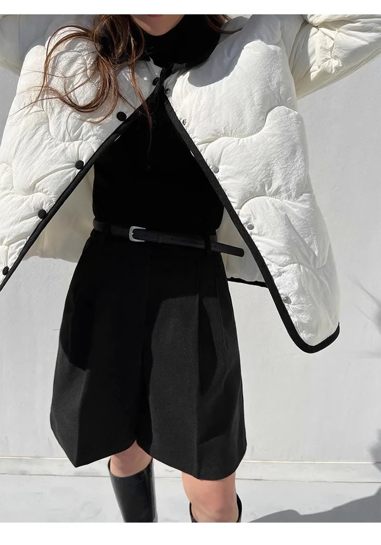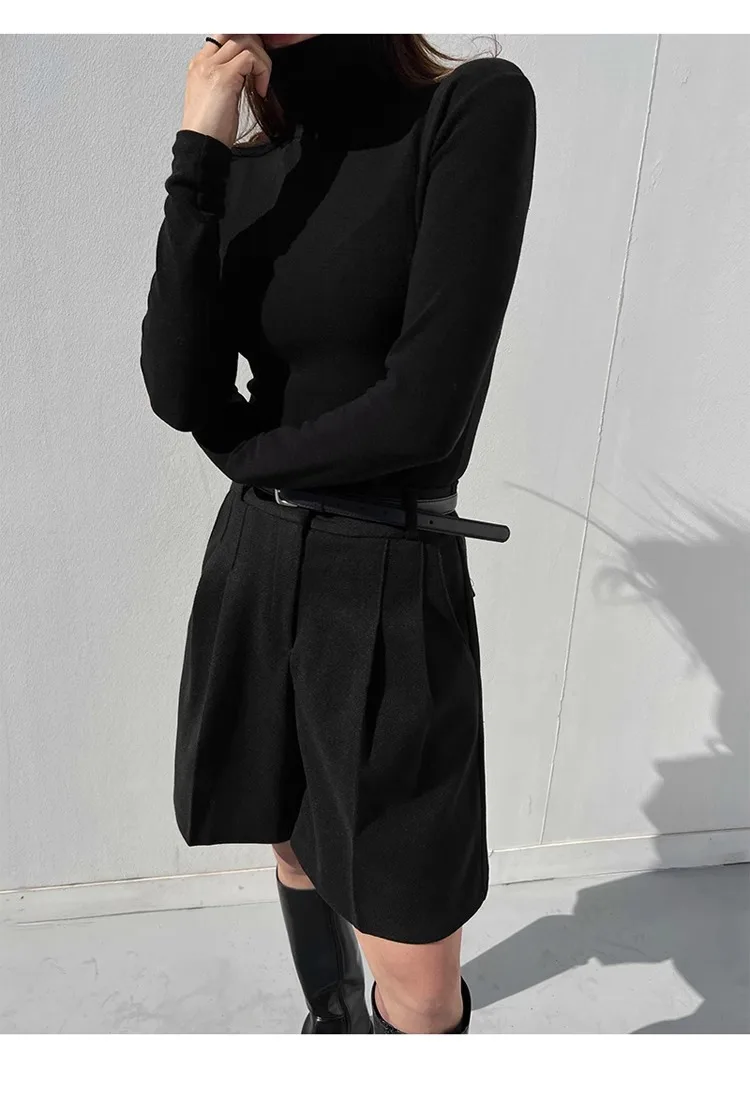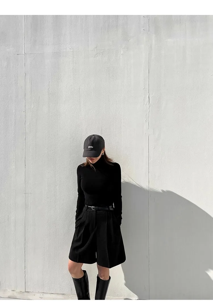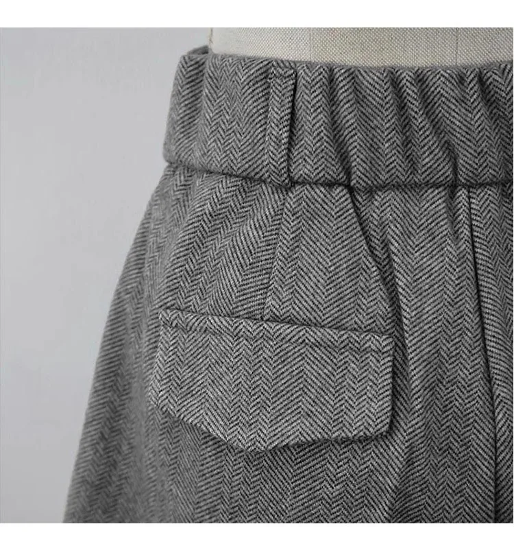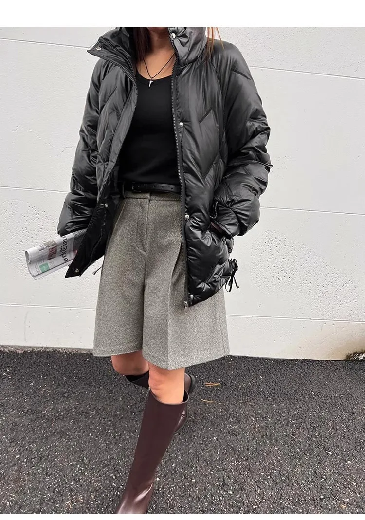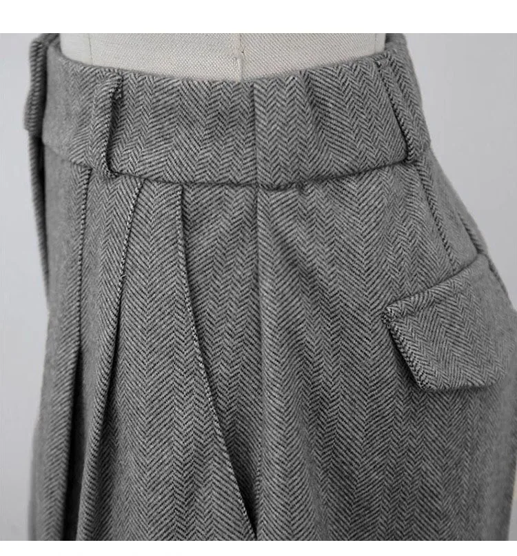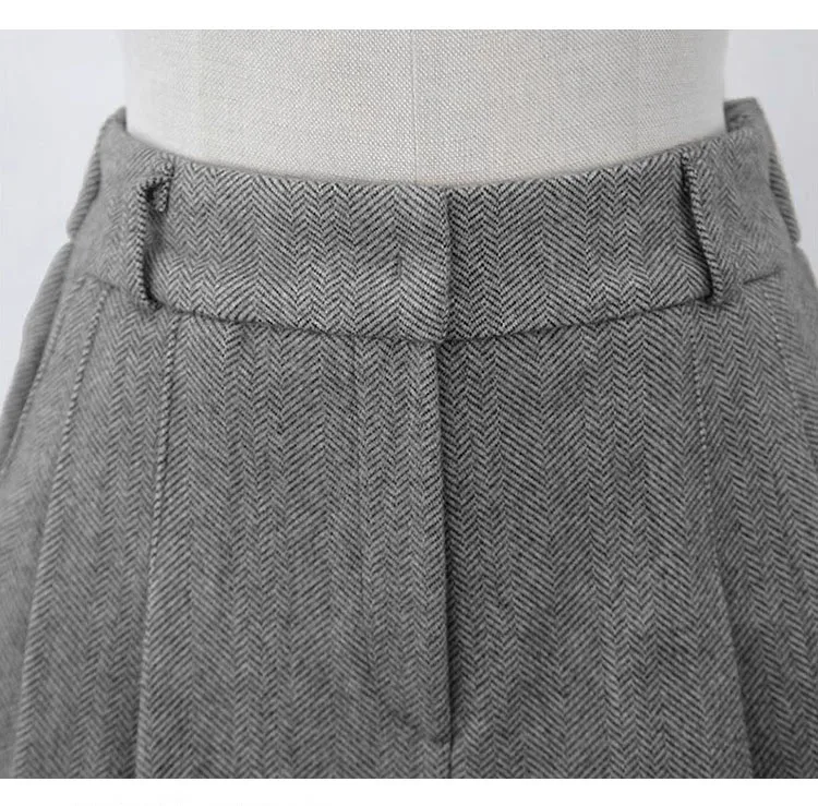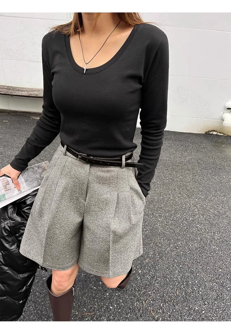 Chic Women Thicken Warm Loose Pockets Faux Woolen Straight Shorts 2024 Autumn Winter High Waist Ladies Wide Leg Shorts WH2
