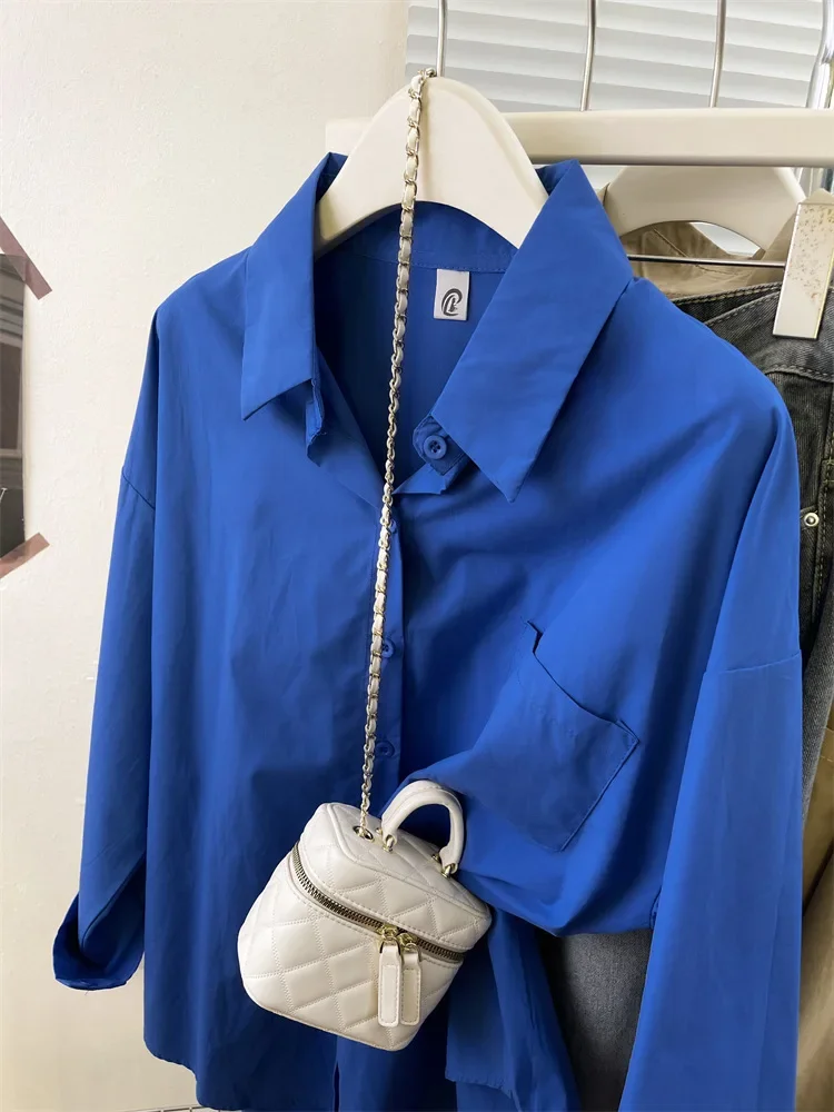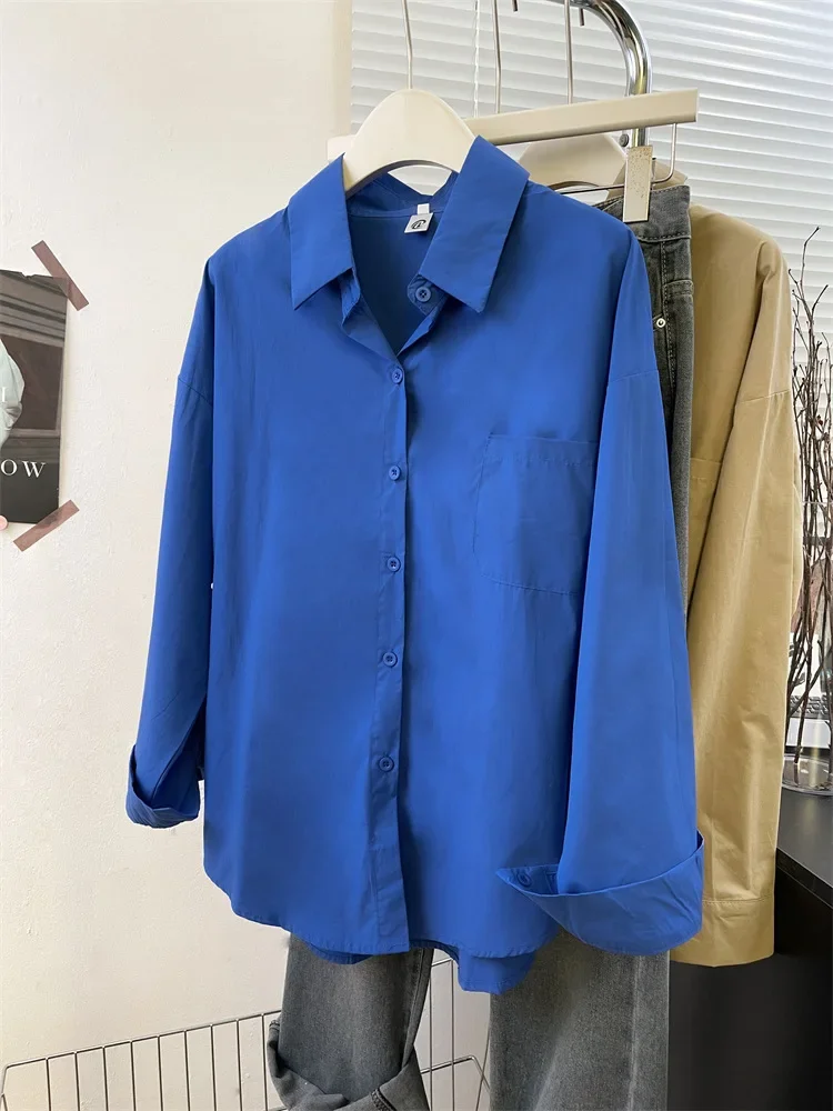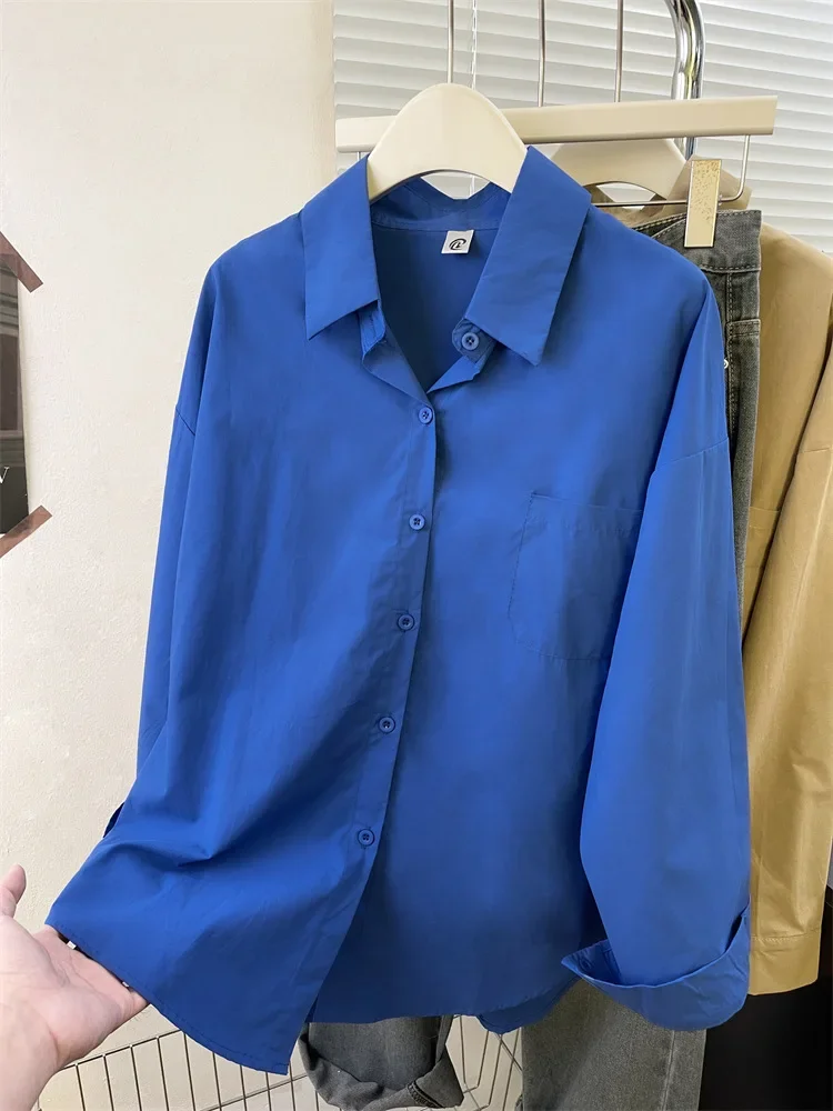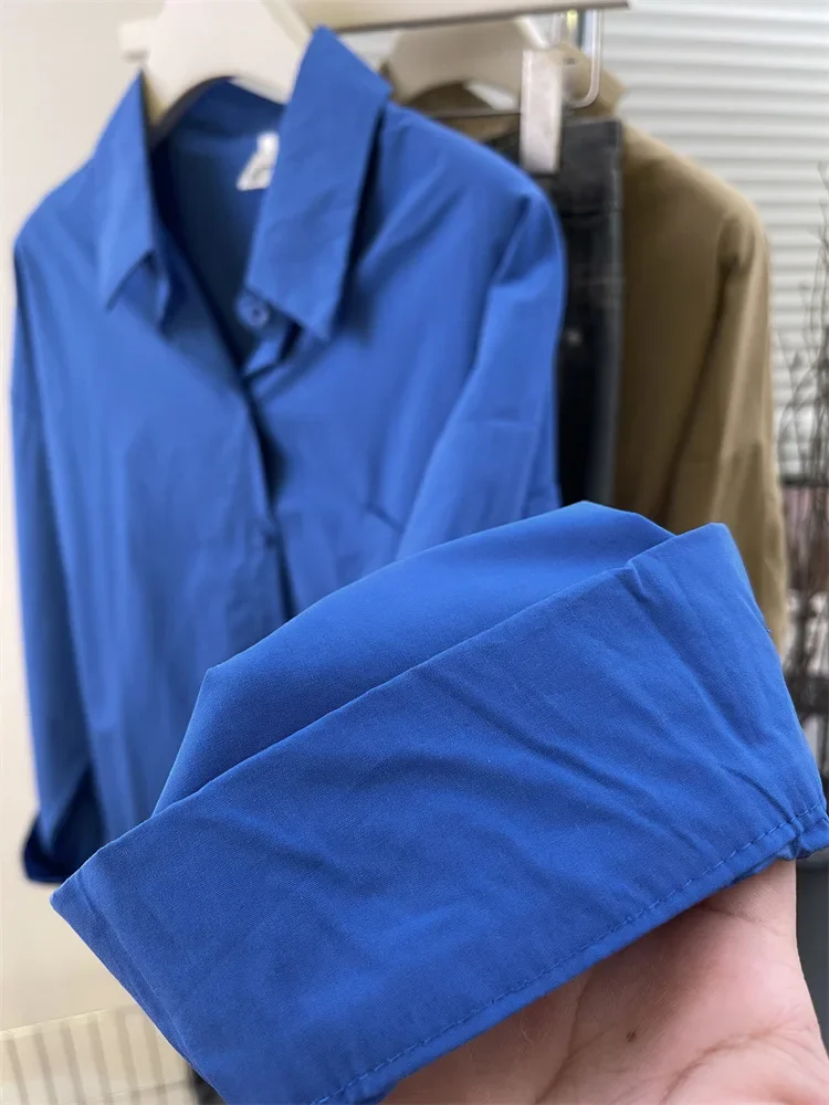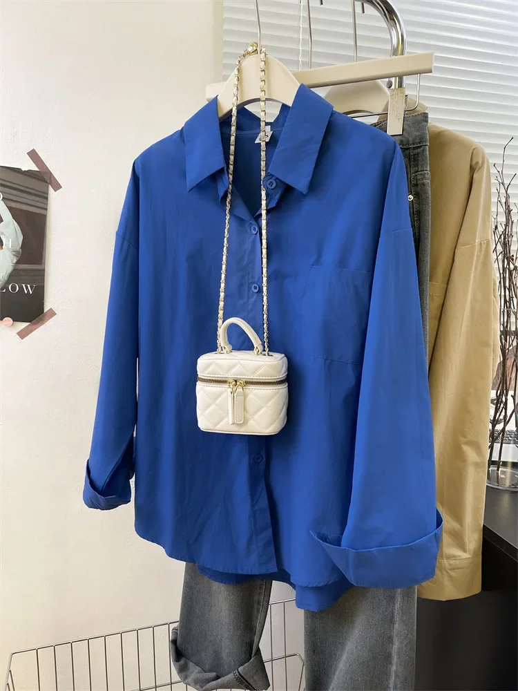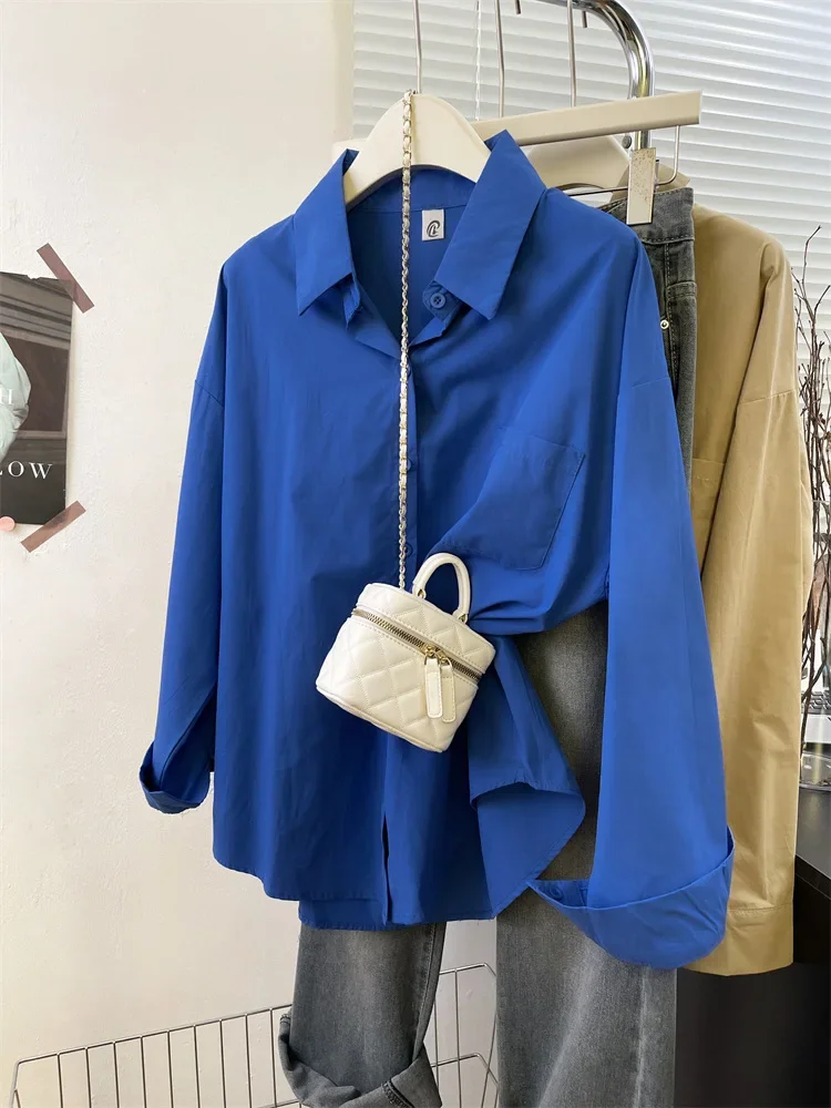 Loose Long Sleeve Blue Shirt Women Single Button Early Autumn High End Women's Shirt Small Size Trendy Korean Style