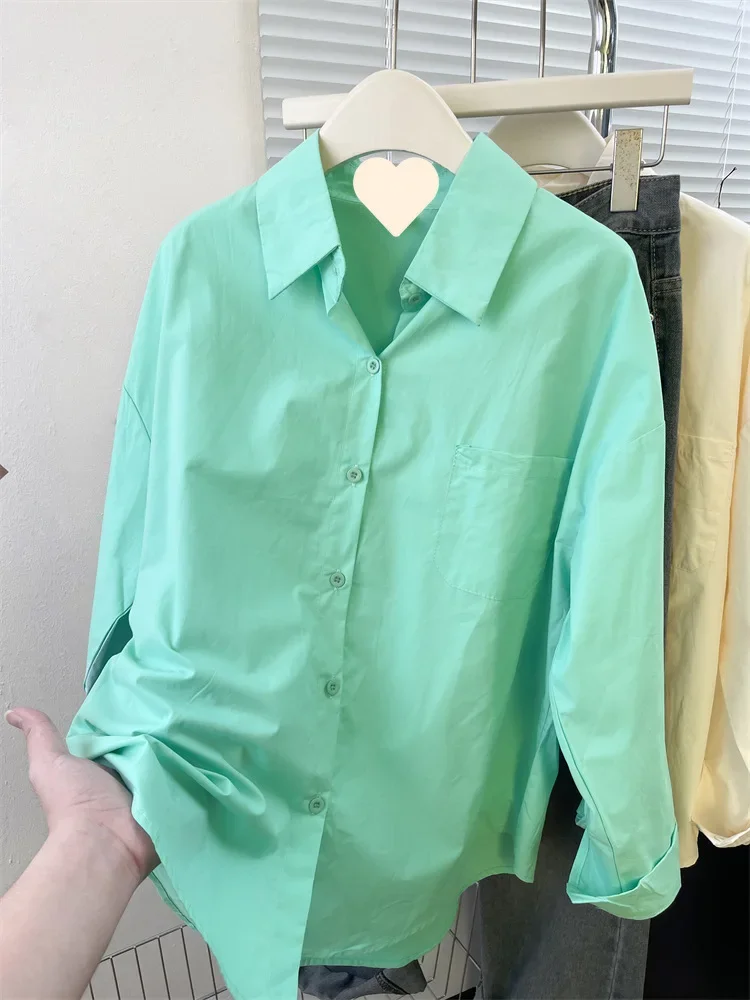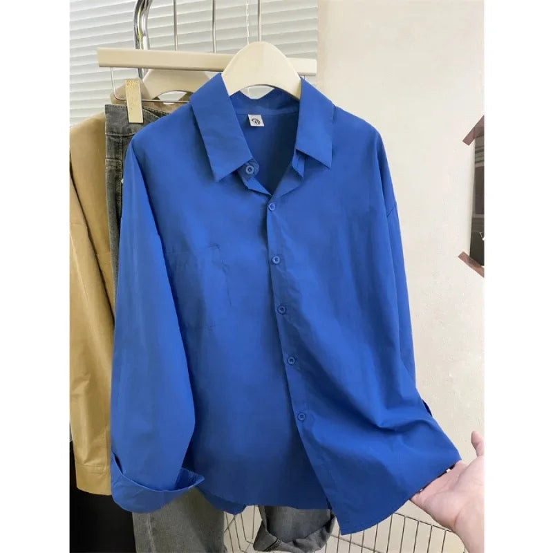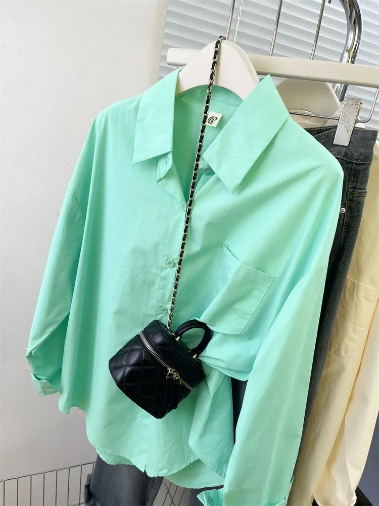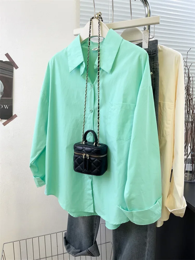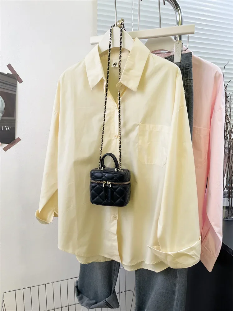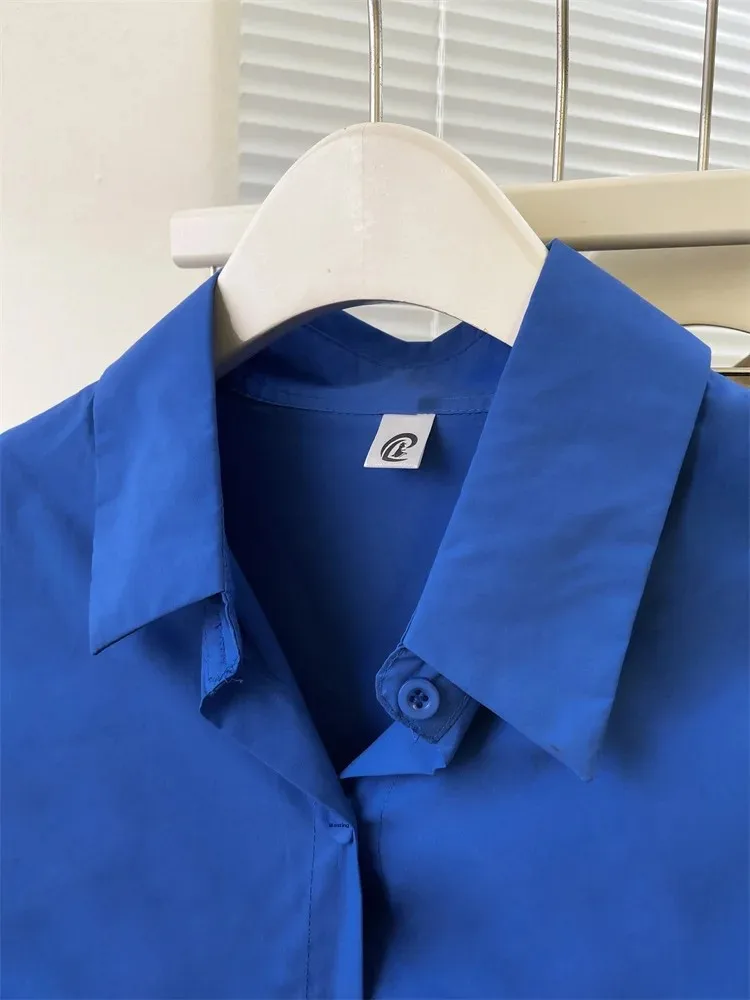 Loose Long Sleeve Blue Shirt Women Single Button Early Autumn High End Women's Shirt Small Size Trendy Korean Style