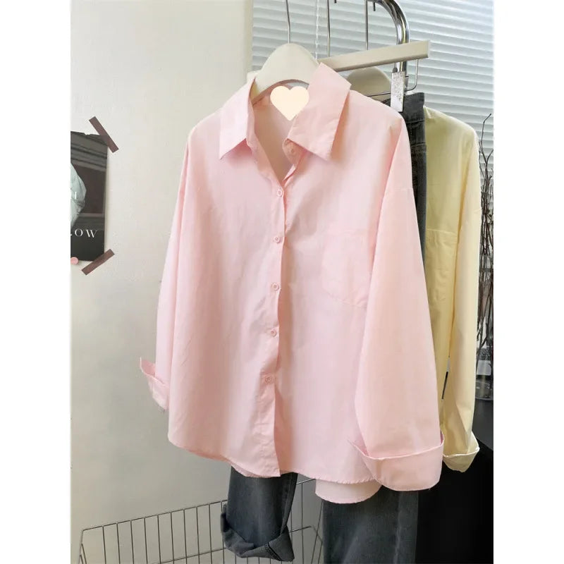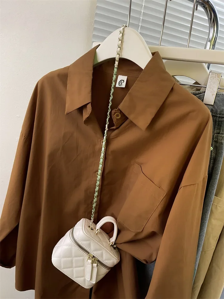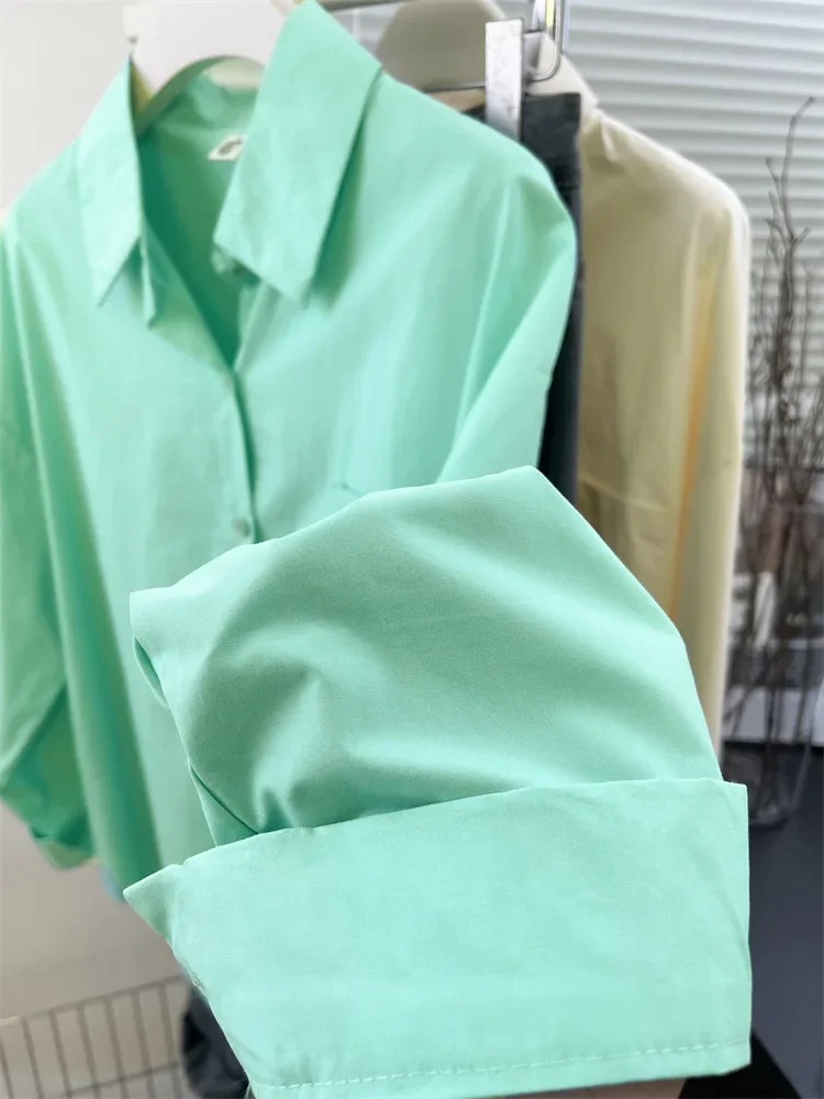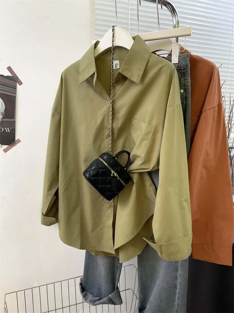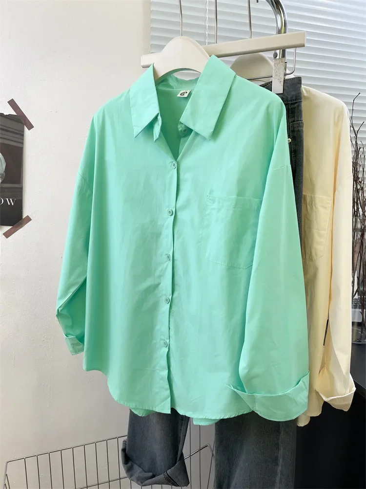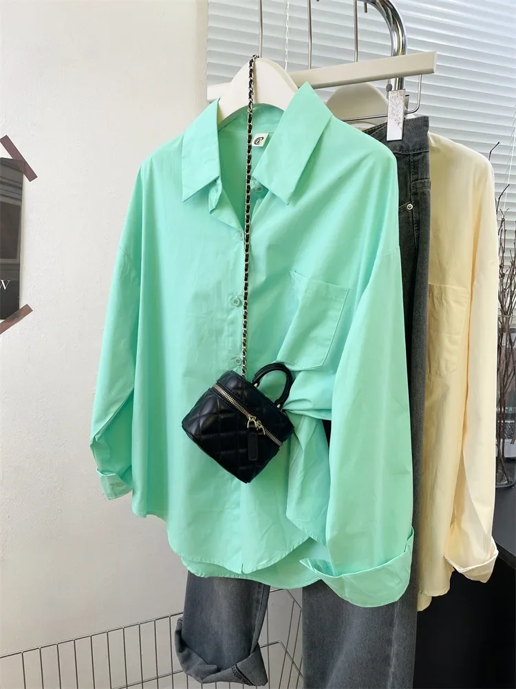 Loose Long Sleeve Blue Shirt Women Single Button Early Autumn High End Women's Shirt Small Size Trendy Korean Style