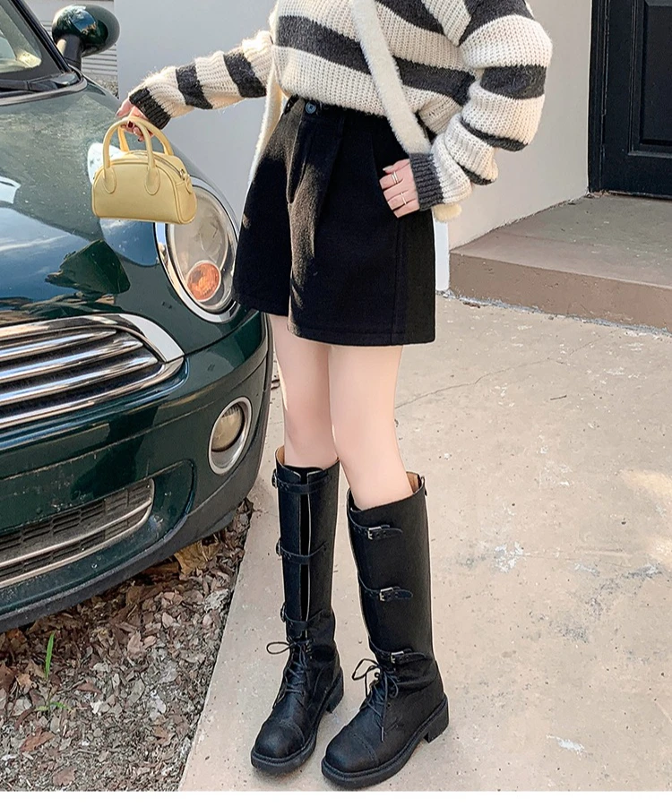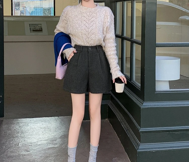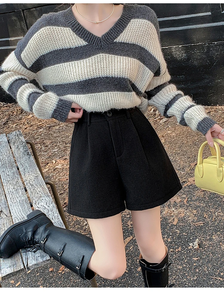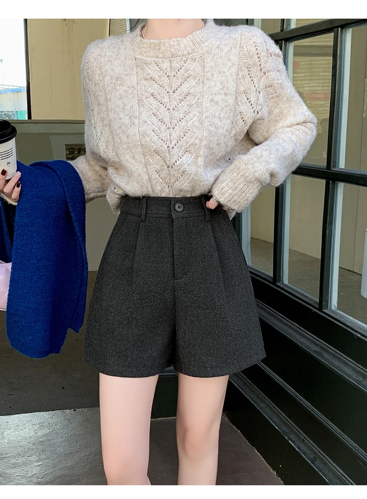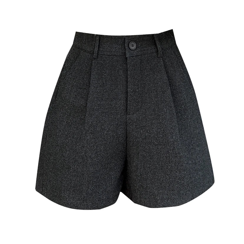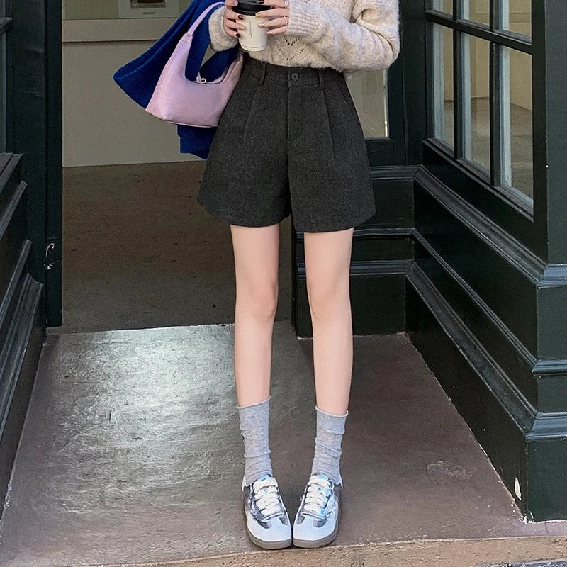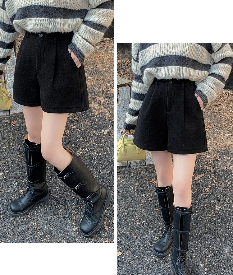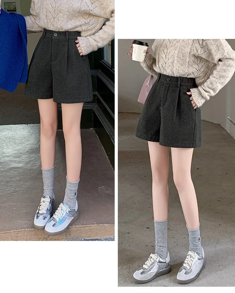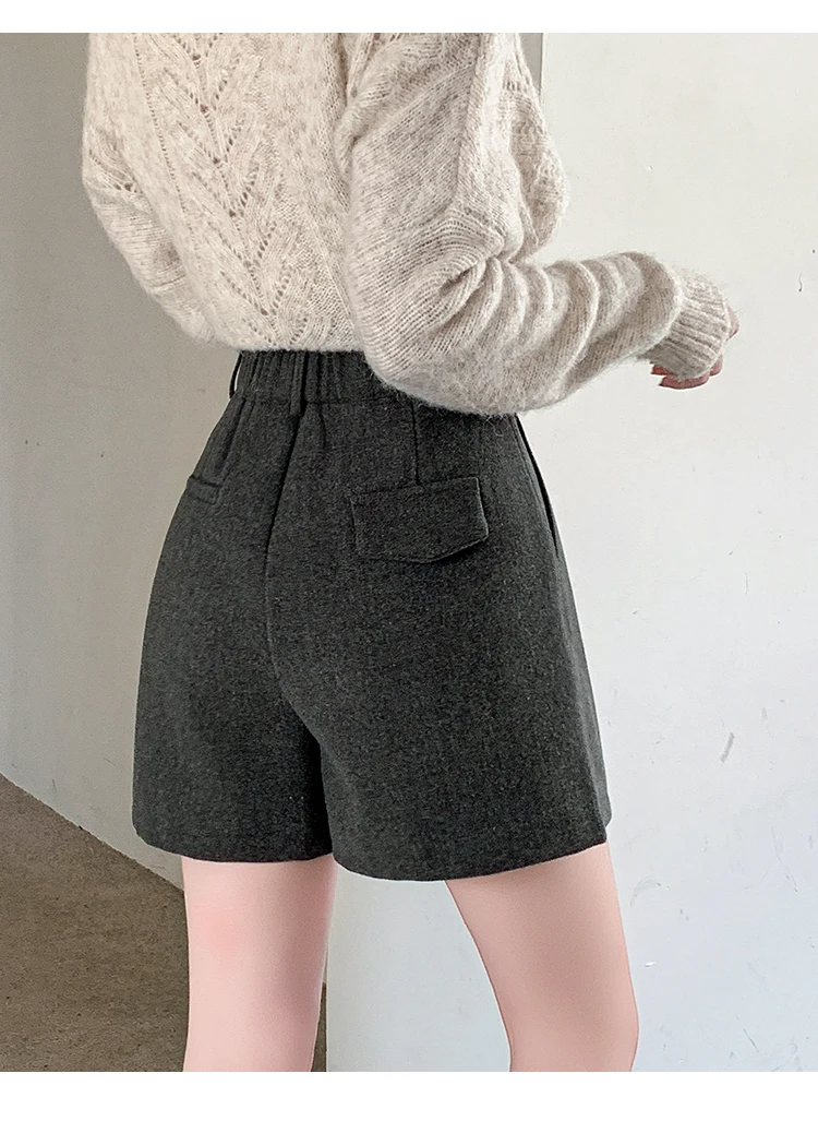 Seoulish Winter Woolen Shorts for Women 2025 New Elegant High Waist Pockets Casual Loose Mini A-line Skirts Shorts for Women