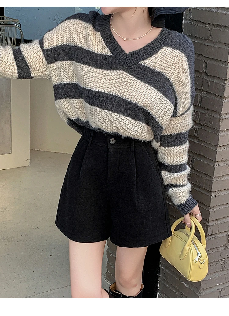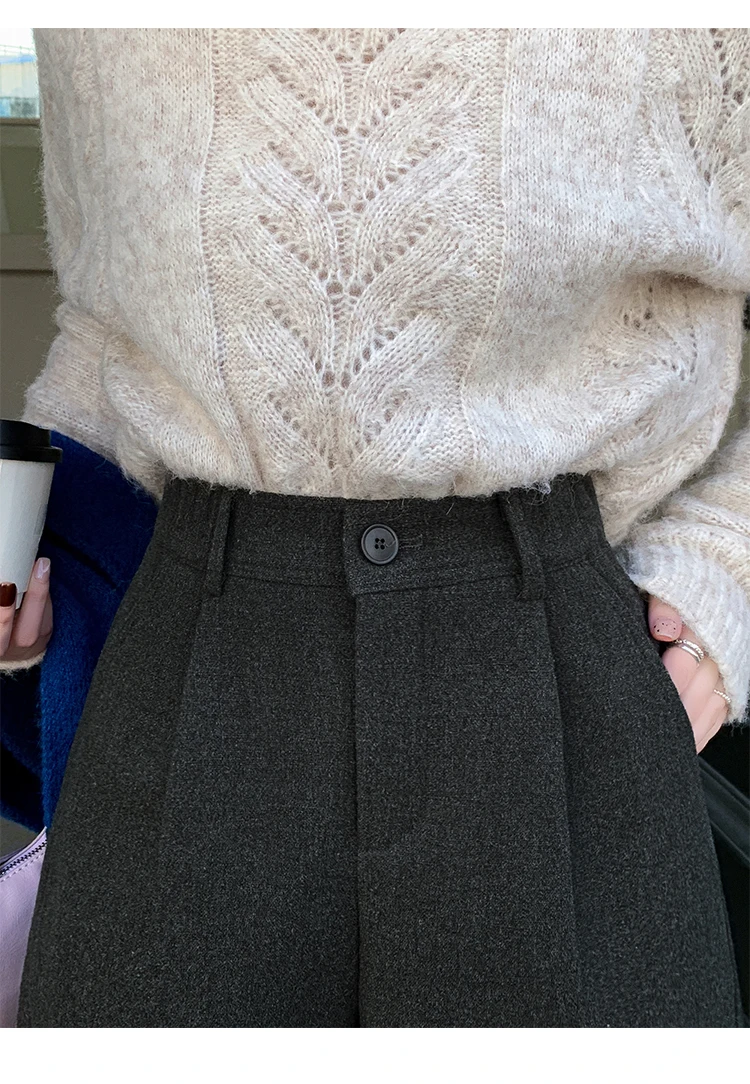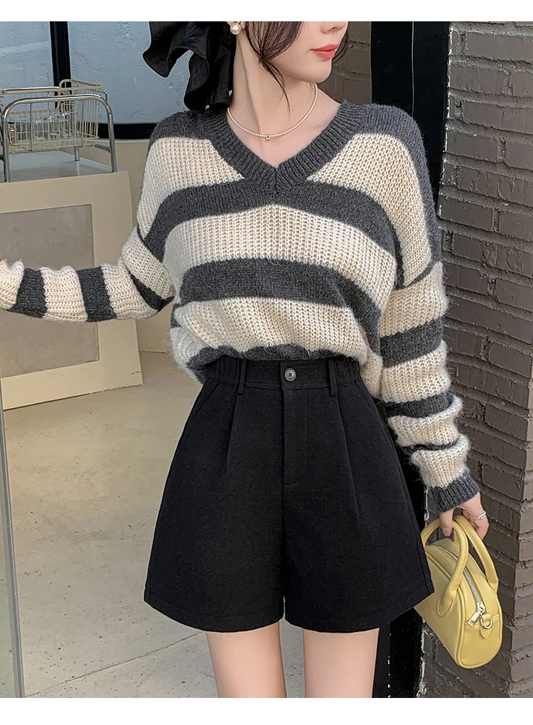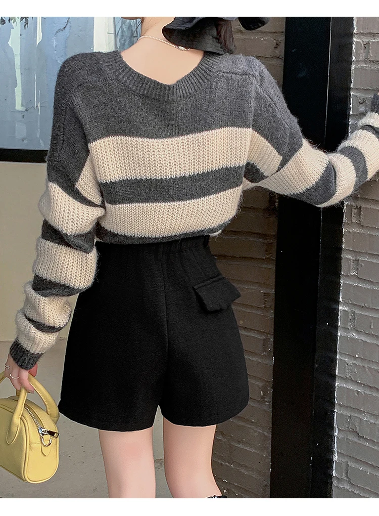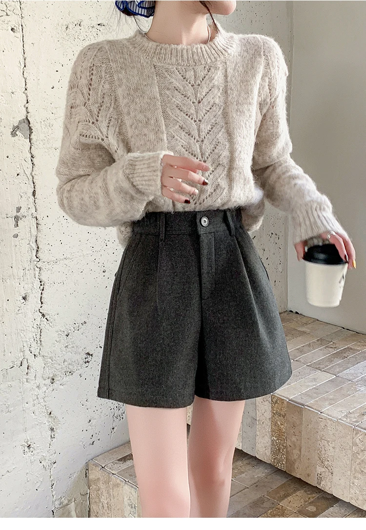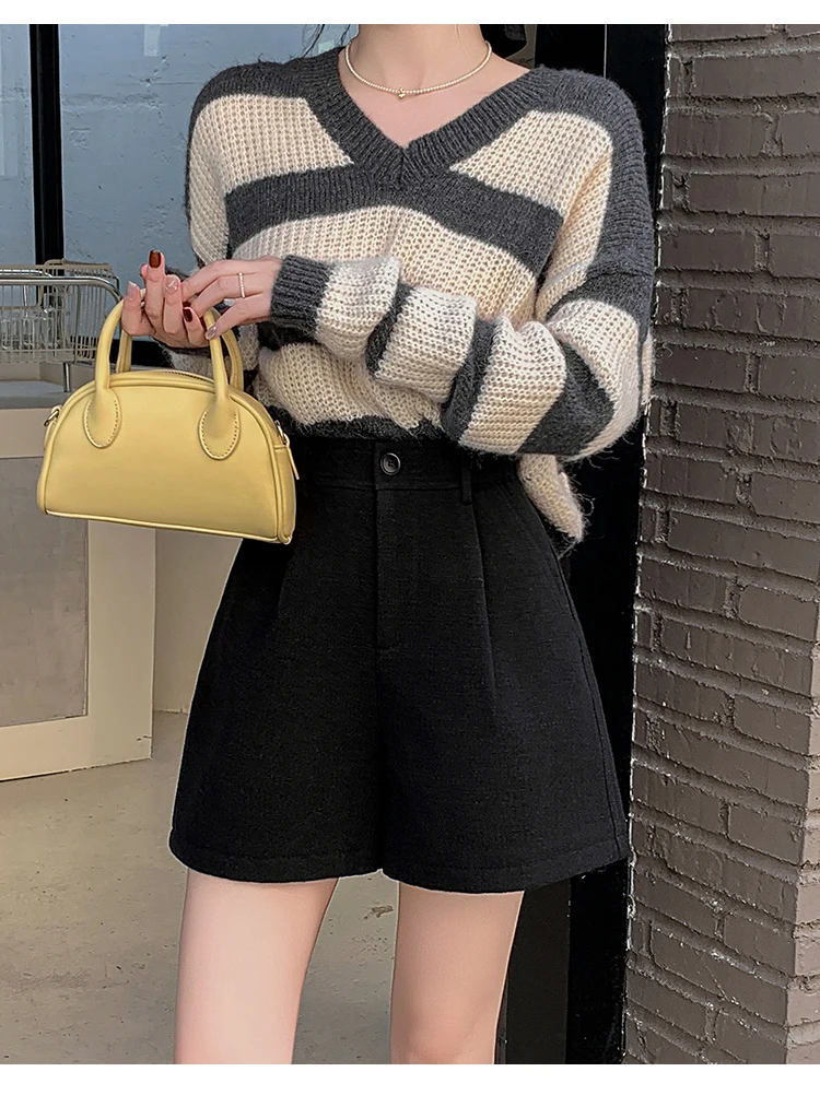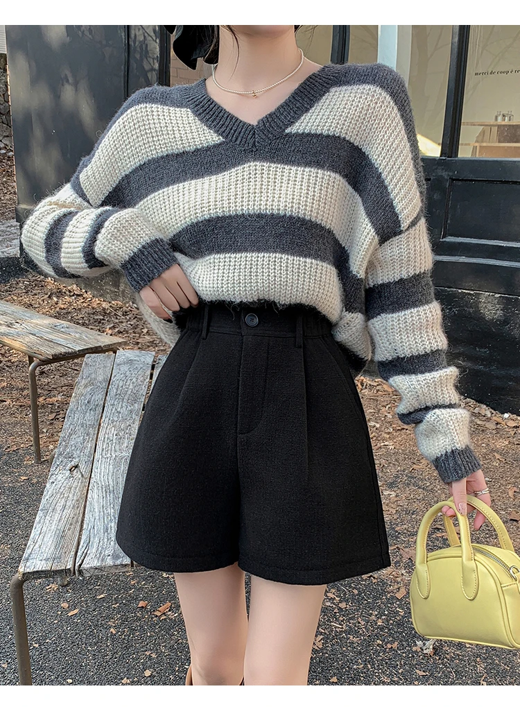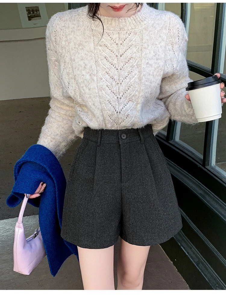 Seoulish Winter Woolen Shorts for Women 2025 New Elegant High Waist Pockets Casual Loose Mini A-line Skirts Shorts for Women