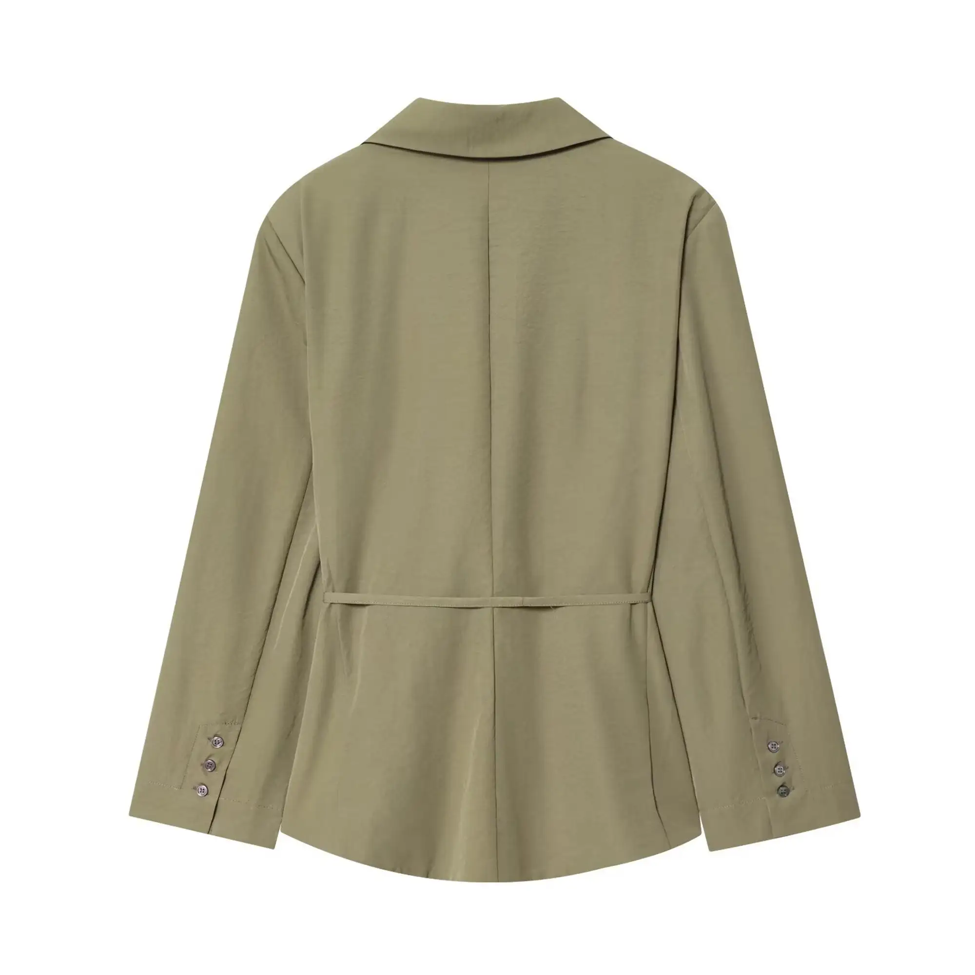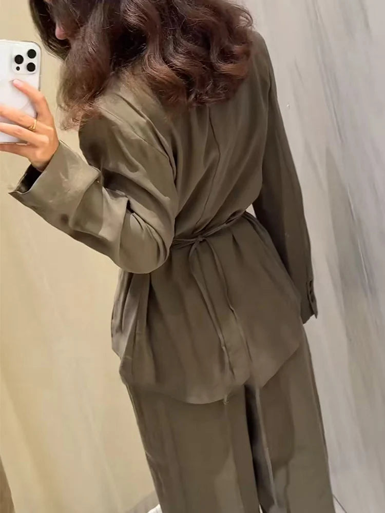 Women Blazer Two Pieces Set Chic Shoulder Pad Lapel Long Sleeve Suit Coat Fashion Wide Leg Pants Set Spring Autumn 2025 New