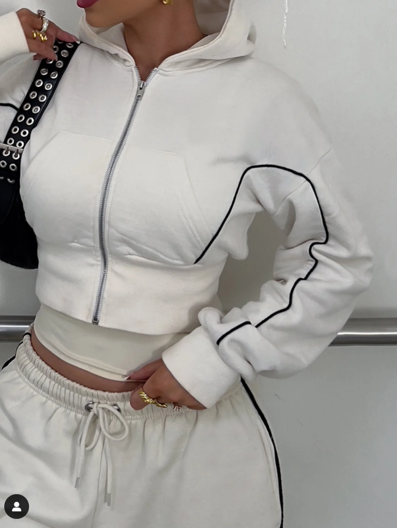 Ideal for autumn and winter, the long-sleeved cropped sweatshirt and pants provide warmth and style.